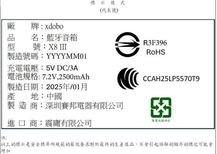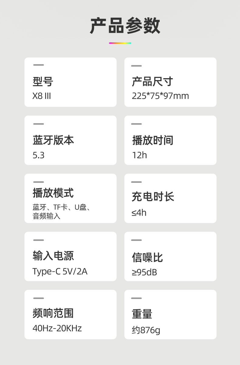 🔸配件:X8 III音箱x1、Type-c充電線x1、說明書x1、AUX音源線x1